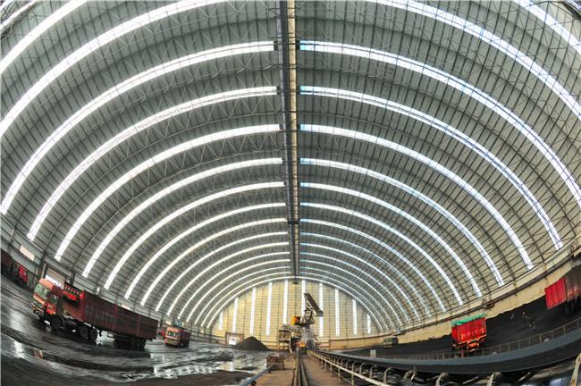 堆场料场封闭式主体结构为新型的钢沙河网架结构,维修结构为钢结构沙河不锈钢板和纤维增强塑料灯具,其外形以沙河网架式和平板为主,连接柱沙河施工自由,设置喷雾自动喷水系统,从而可以实现棚内所有物料的覆盖,减少物料在运输过程中的损耗,起到防尘的作用,减少工厂关闭后的二氧化硫排放量,50mg/m3颗粒排放量小于10mg/m3,非常适合低能耗。低闭库自动感应反应对库存轮胎进行清洁,确保轮胎不受道路污染;封闭的储存区可从源头控制粉尘污染,控制无序排放。